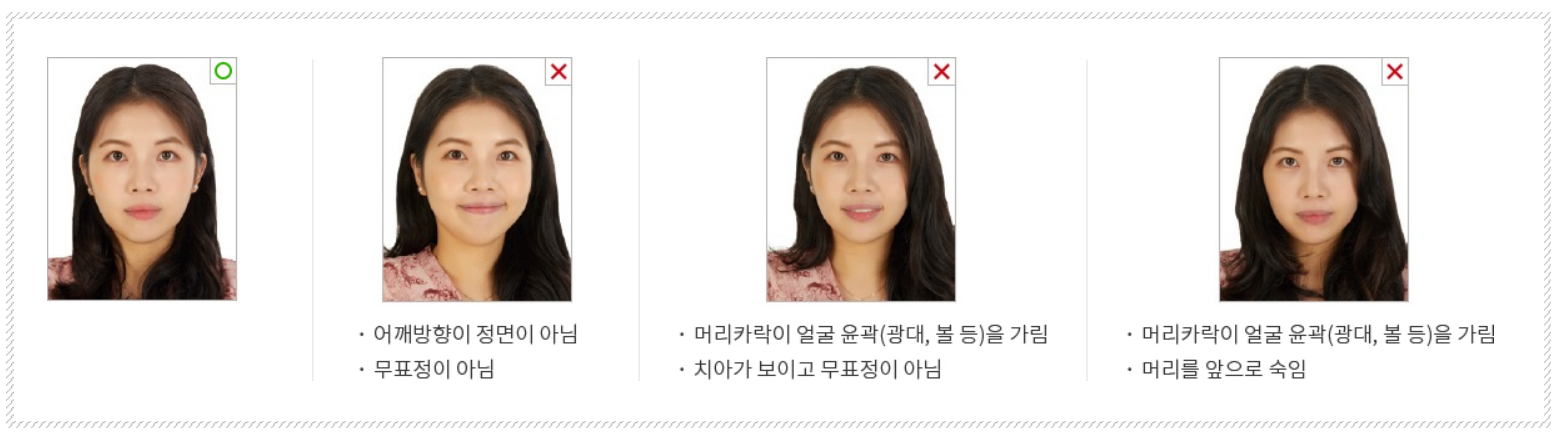 ※ 변형된 사진은 자동출입국 심사 오류 및 입국 거부 사유가 될 수 있습니다.