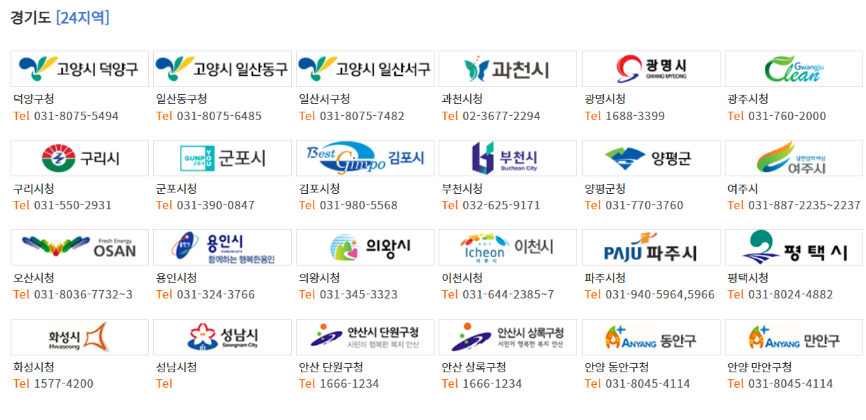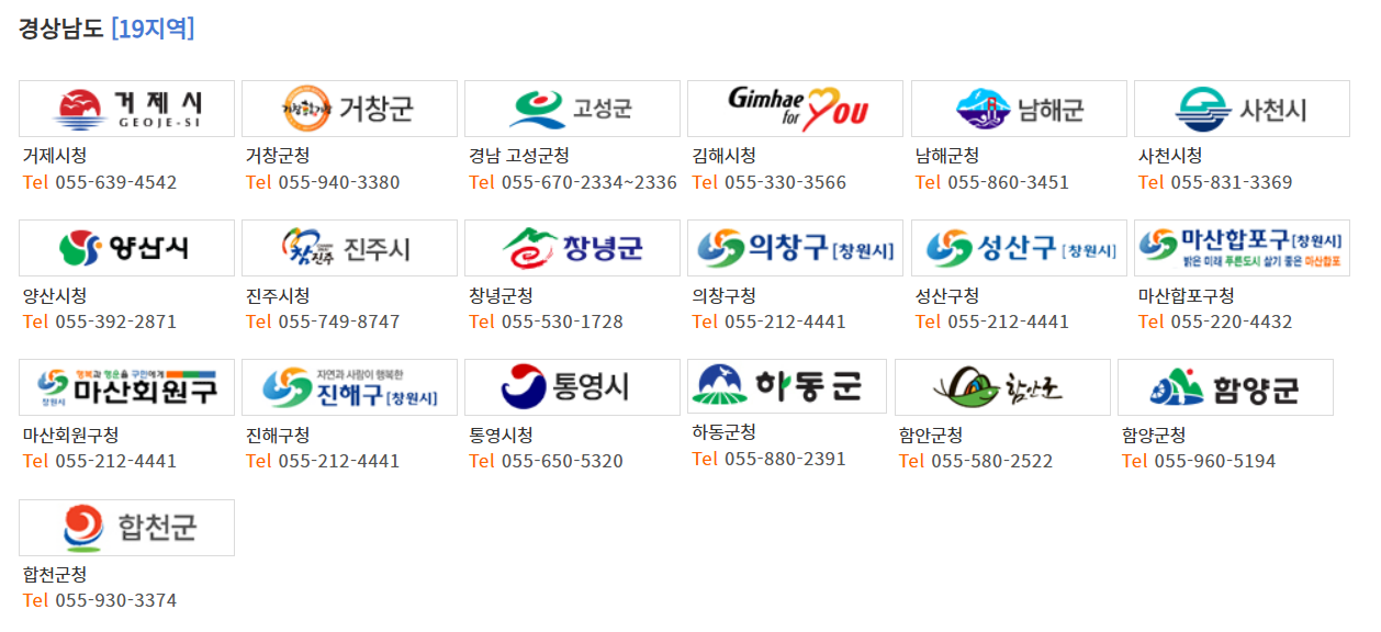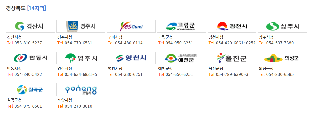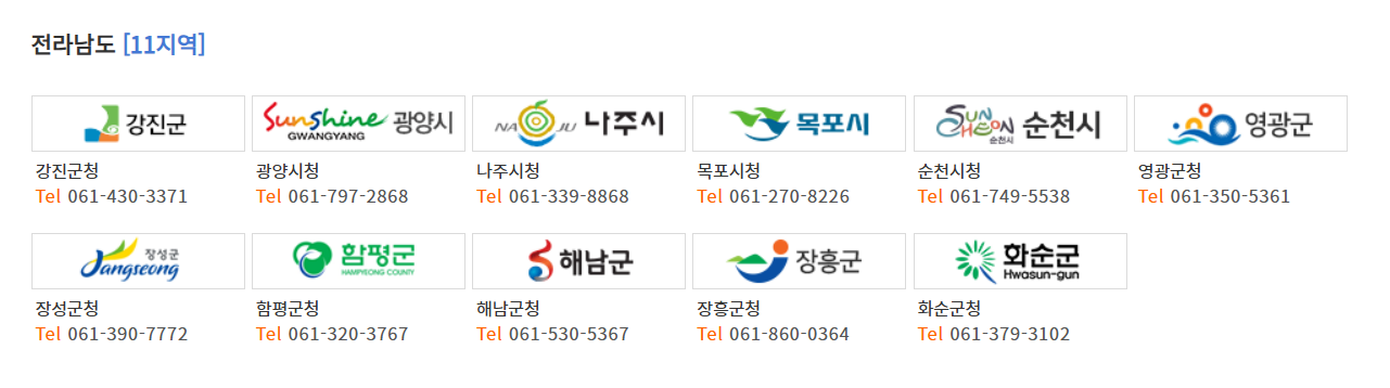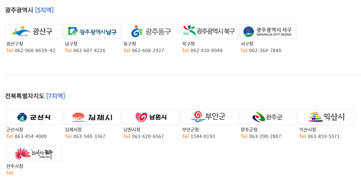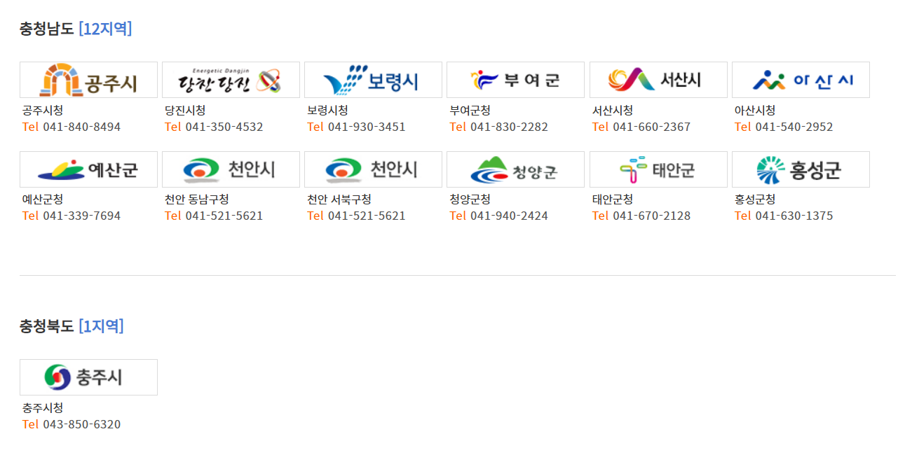 아래는 신청이 가능한 지역입니다. 지역을 누르시면 원하시는 지역 신청페이지로 넘어갑니다.