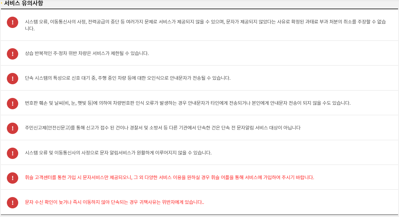 꼭 서비스 안내를 확인하셔야 하는 이유는 각 지자체마다 주정차단속알림서비스에대한 규정이 다르기 때문이니 꼭 확인해보셔야 합니다.