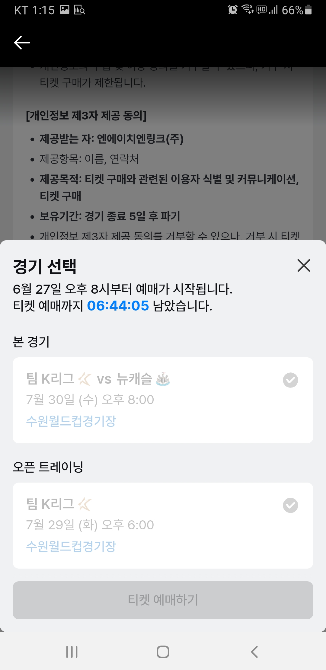 - 선예매에서 티켓을 예매한 경우, 동일 경기의 일반 예매는 참여하실 수 없습니다. (오픈 트레이닝도 동일)