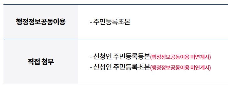 ※ 행정정보 연계 동의 시에는 자동으로 행정정보공동이용시스템에 연계되어 주민등록초본 제출 불필요